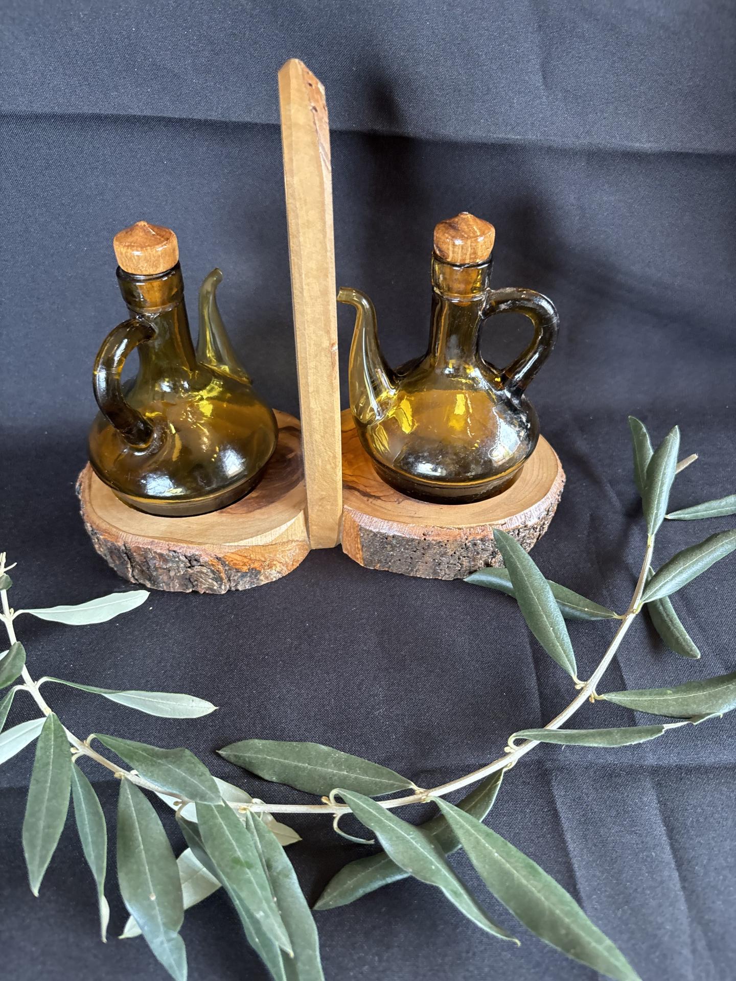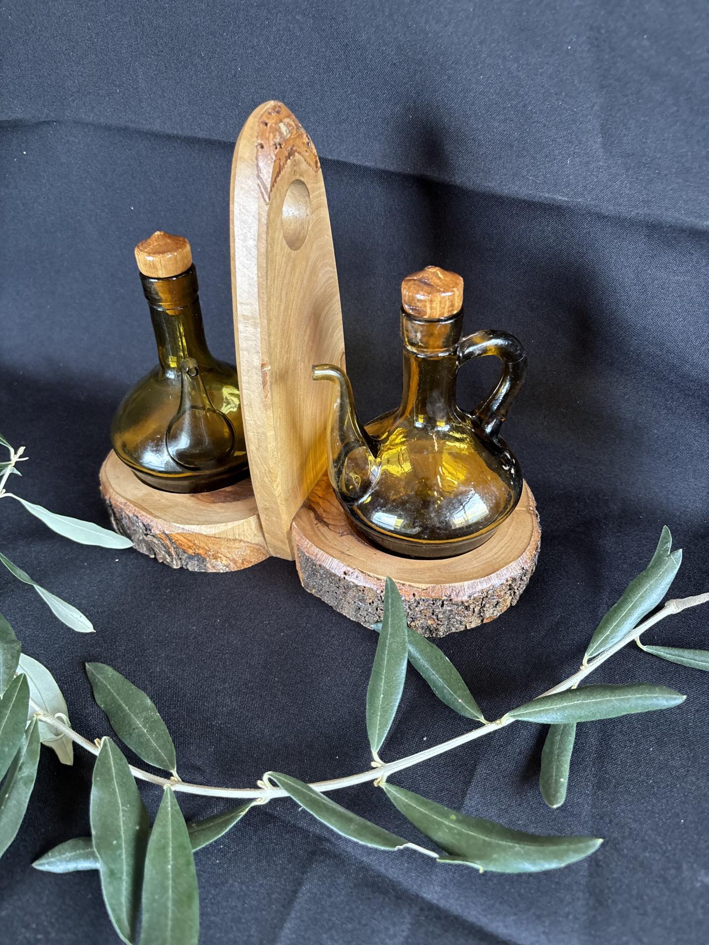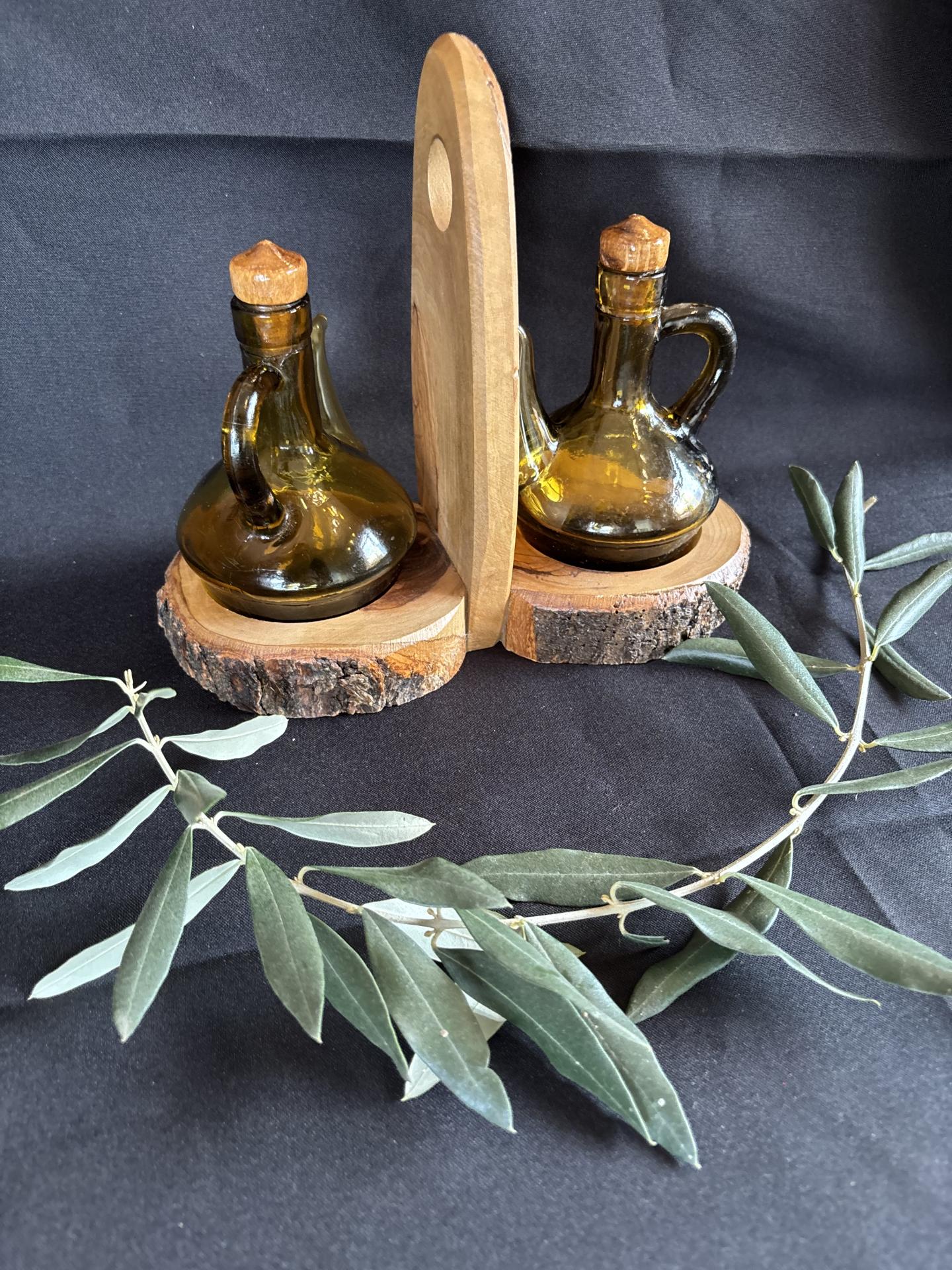 Aceitera y Vinagrera Rústica Vintage de Madera de Olivo – Hechas a Mano en España