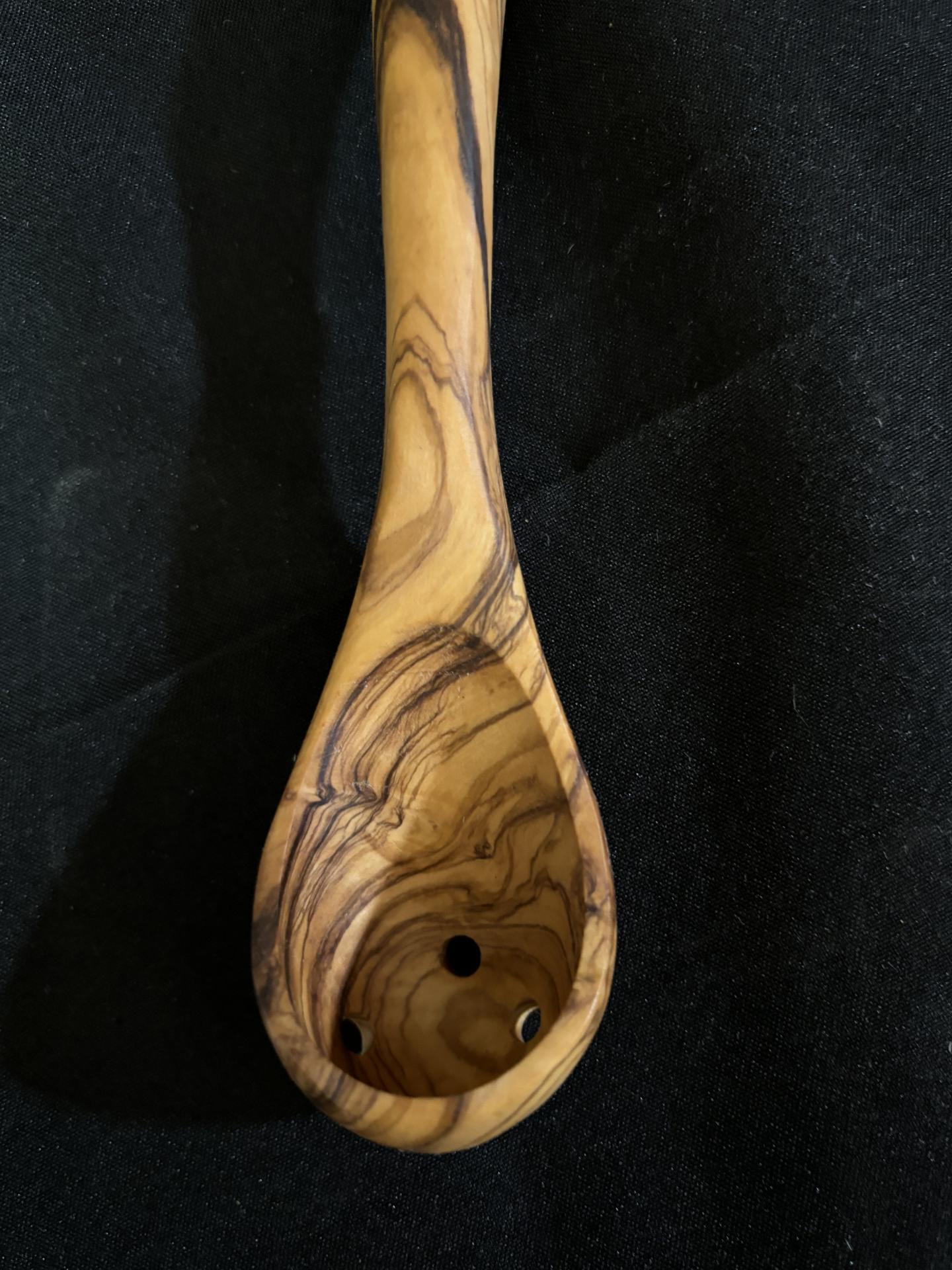 Descubre nuestro cazo vintage de madera de olivo, un utensilio artesanal español de los años 60, perfecto para sacar aceitunas de manera cómoda y práctica. Hecho a mano por artesanos españoles, este cazo combina diseño vintage, funcionalidad moderna y sostenibilidad, ideal para botes pequeños y grandes.