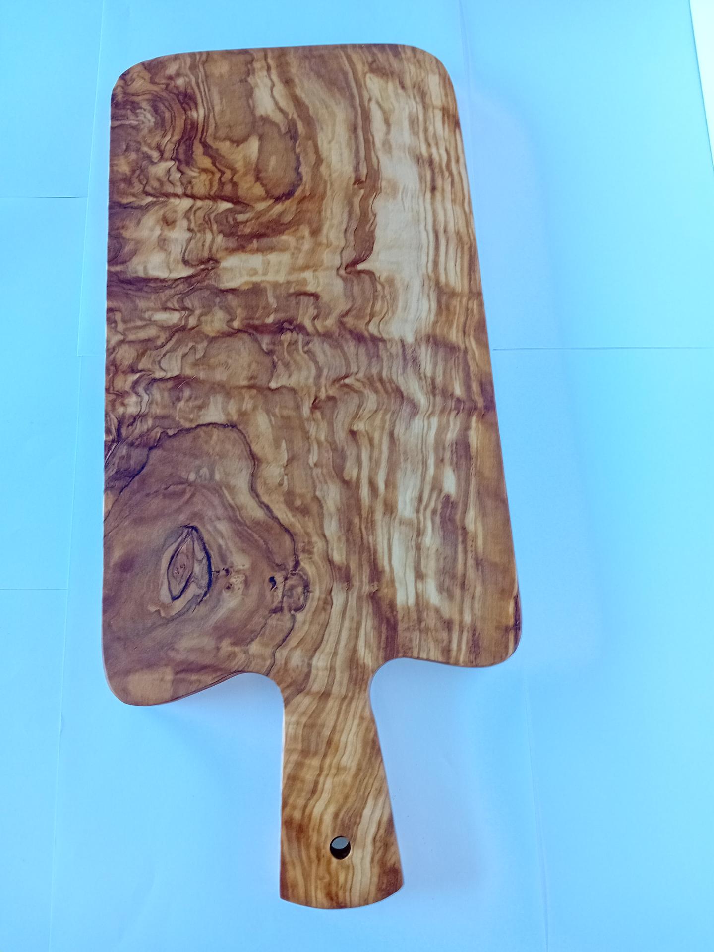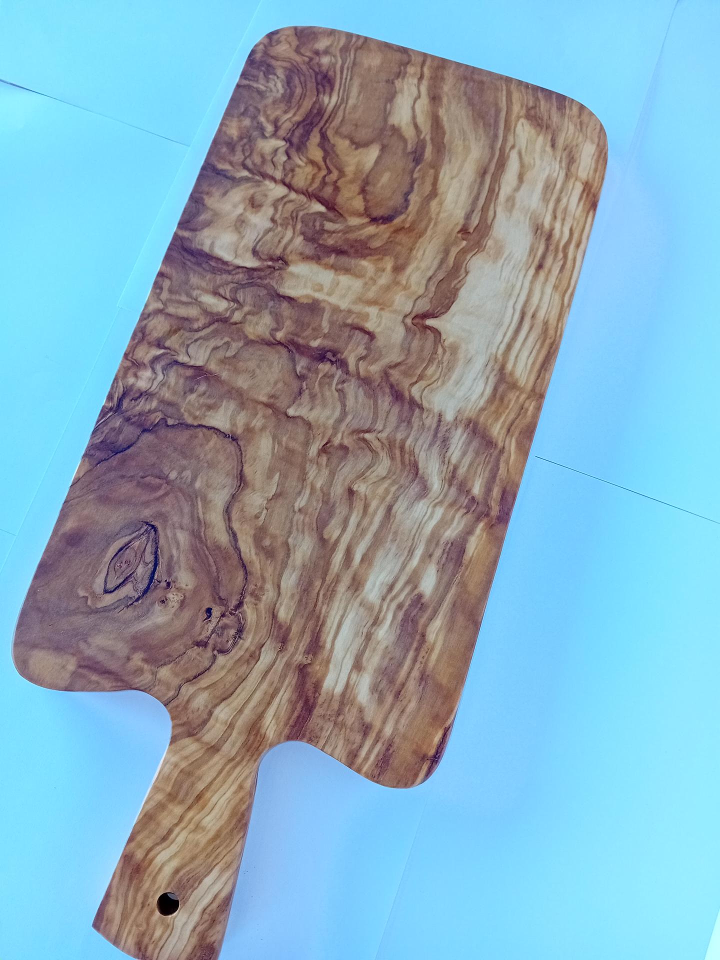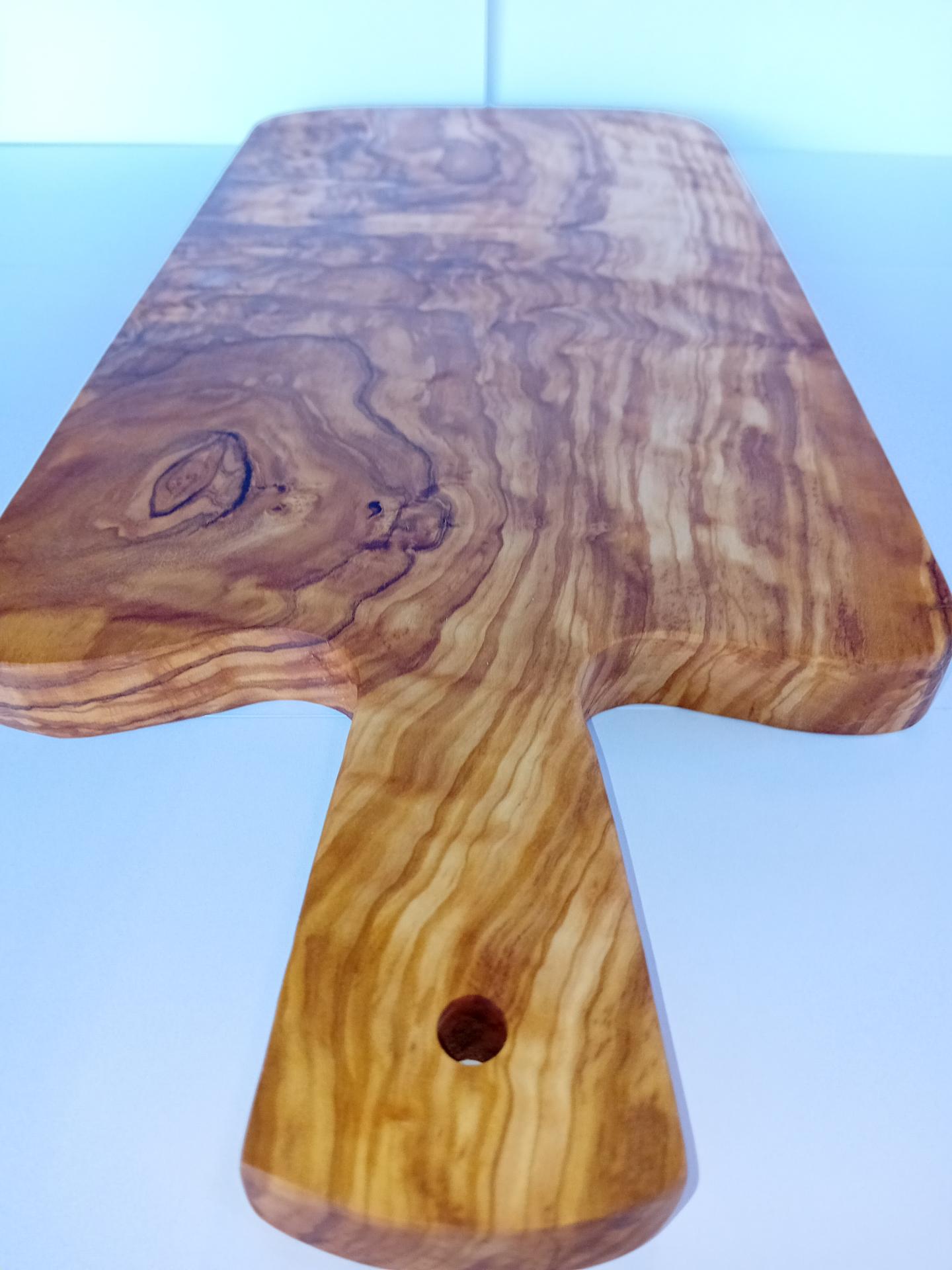 Tabla de Madera de Olivo Artesanal con Mango Grande – Antibacteriana, Ideal para Cortar Carnes, Verduras y Quesos, Hecha en España