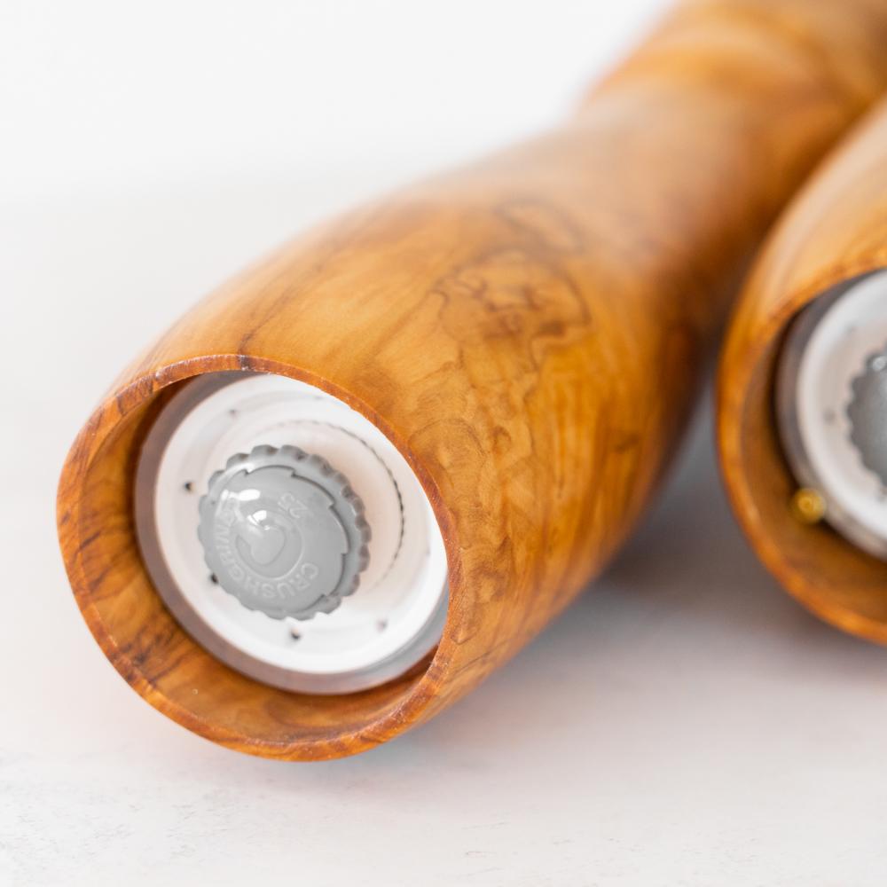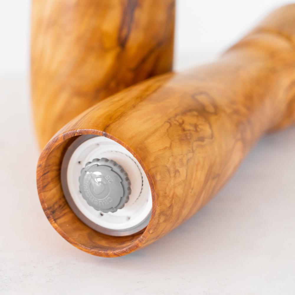 Cada unidad está hecha a mano en España con madera de olivo natural, lo que convierte a cada pimentero en una pieza única, resistente y con una belleza inigualable.