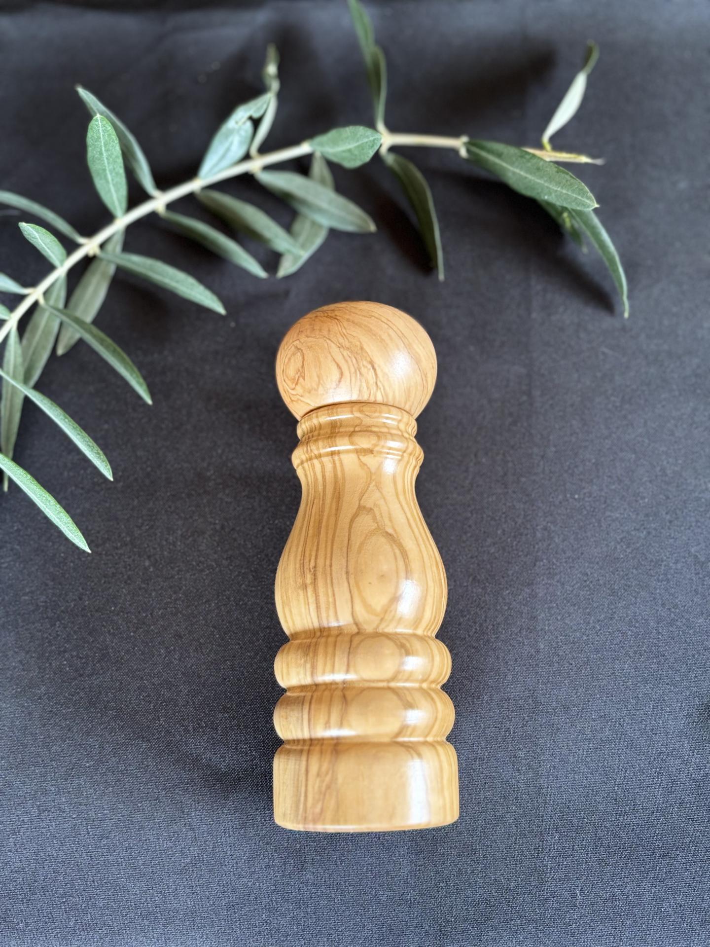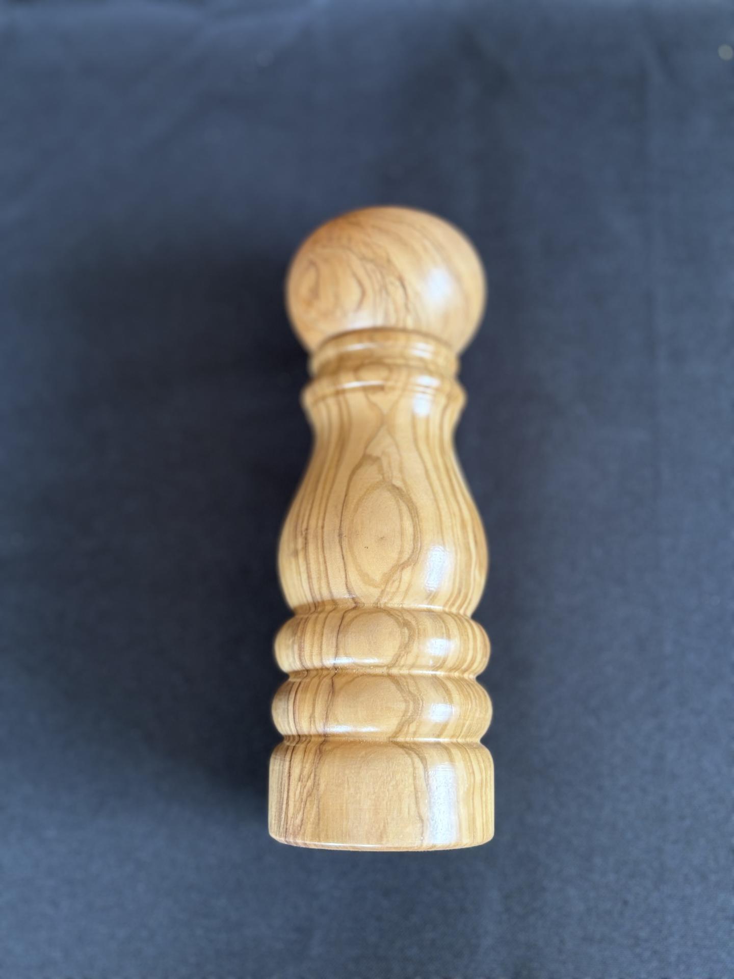 Pimentero Vintage Pequeño Torneado de Madera de Olivo – 17 × 6 cm